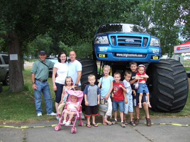 Roman, Tiffany and kids in front of Big Foot at the Logan Car show.