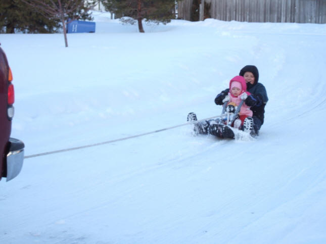 Looping the driveway in the snow.