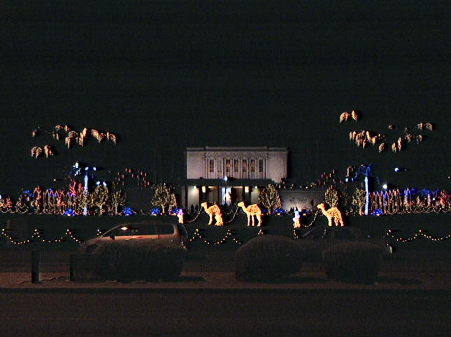 Christmas displays and lights around the Temple grounds.