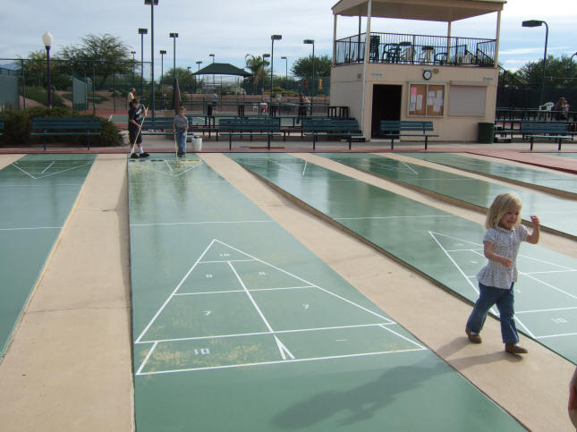community we got to play shuffle board. Julia just realized that it wasn't her