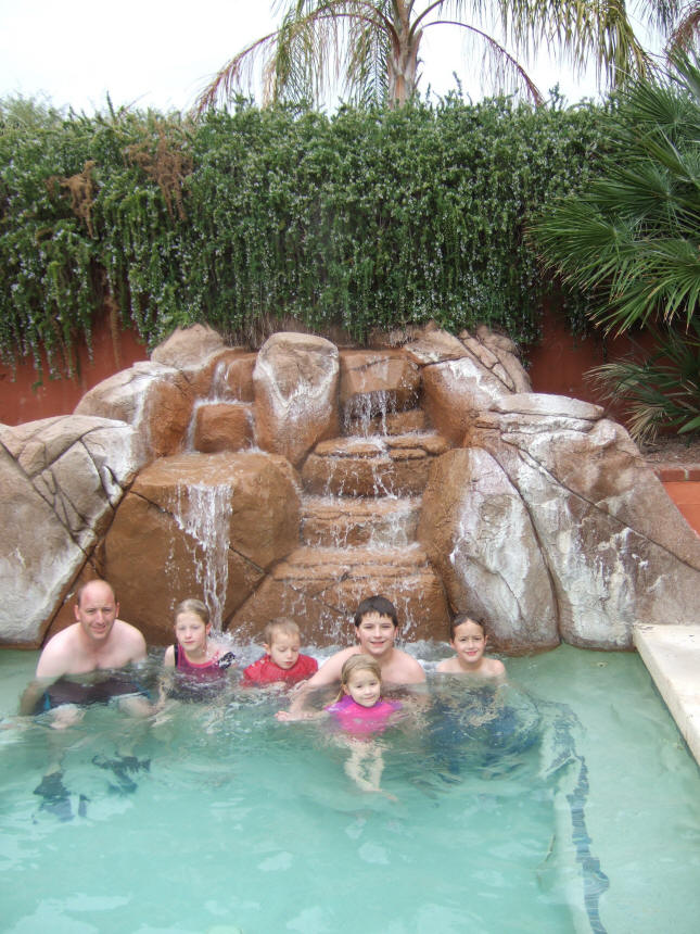 done swimming. Can you see how sneaky Julia is being giving James "rabbit ears"?