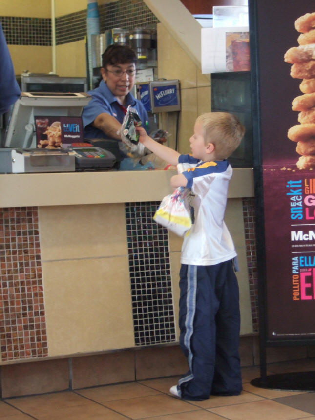 order area negotiating an exchange on his toy.
