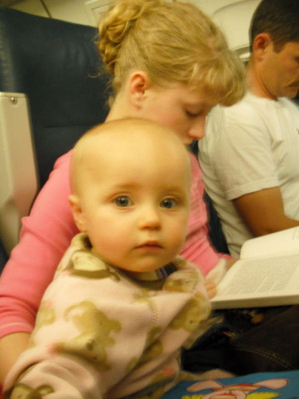 Ellen and Megan on the airplane, leaving to go to Alaska.