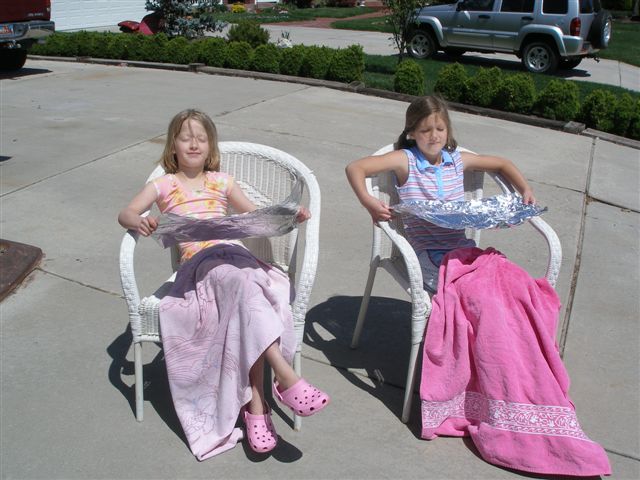 Sun Bathing. Or sun cooking. Megan's friend, Page, taught her how to do this and Megan cooked to a crispy.