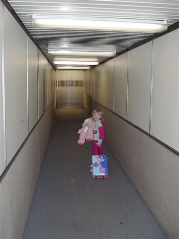 Going down the hallway to the plane |