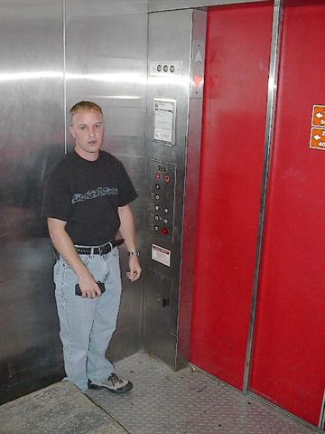 In the elvator |