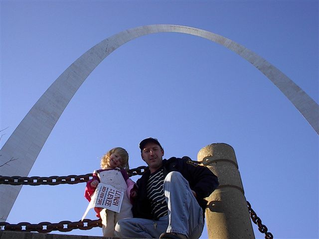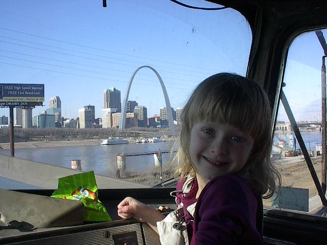 Megan and me arriving at St. Louis and driving past the Arch. |