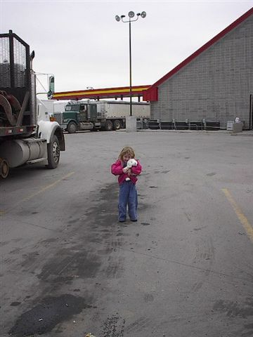 One of the many many truck stops. By now, Megs is a regular trucker gal. |