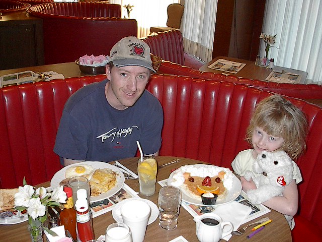 Breakfast was soooo good. We celebrated the long trip and last day on the road with a fancy hotel and a wild breakfast. My breakfast steak was still mooing it was so fresh. Usually when I say "rare" the steak comes back black and toasty. I guess I'm not used to the fancy restraunts. They bearly brazed the outer layer. |