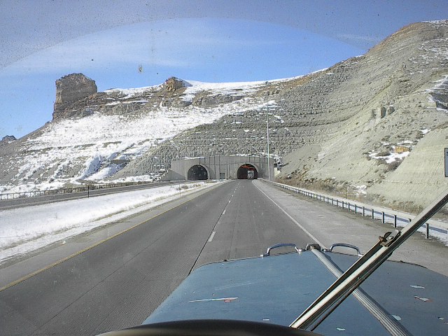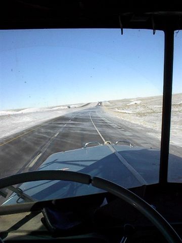 Wyoming for the most part is flat and not much to look at. The snow gets to blowing so hard across the road that you at times actually can't see the road. you just drive in between the reflector sticks on the side of the road. |