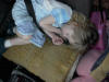 Megan getting ready to bed down for the night. |
