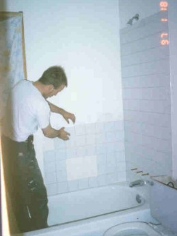 Me re-doing the tile in our bathroom. A trip to California