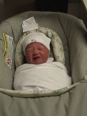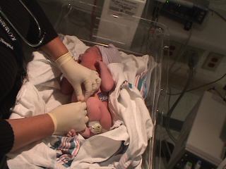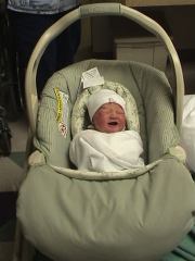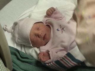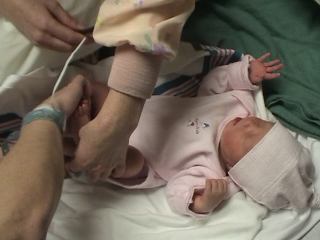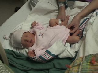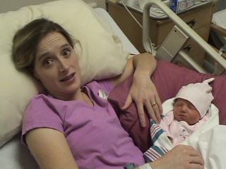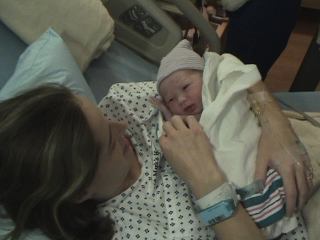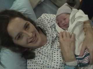 Megan holding her at hospital.