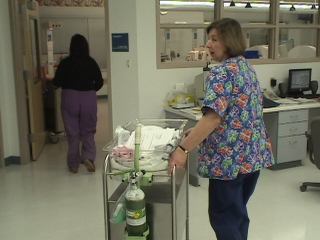 Audrey checking out her room & bed and contemplating where all the pain is about to take place